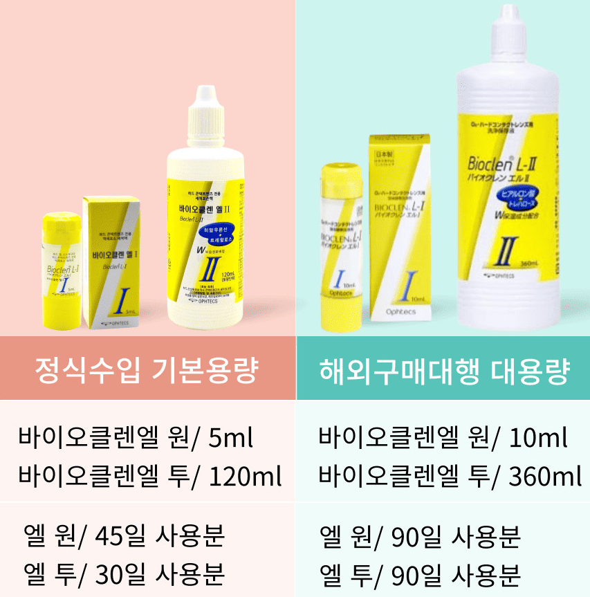 - 제품명: 바이오클렌엘 원1투2 세트 (단백질제거 세척액 + 식염수 + 보존액)