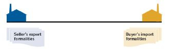 물품이 이러한 방법으로 매수인에게 인도되면 매도인은 그 물품이 목적지에 양호한 상태로 그리고 명시된 수량 또는 그 전량이 도착할 것을 보장하지 않는다. 왜냐하면 물품이 운송인에게 교부됨으로써 매수인에게 인도된 때 위험은 매도인으로부터 매수인에게 이전하기 때문이다. 그러나 매도인은 물품을 인도지로부터 합의된 목적지까지 운송하는 계약을 체결하여야 한다. 따라서 예컨대 (항구인) 사우샘프턴이나 (항구가 아닌) 윈체스터까지 운송하기 위하여 (항구가 아닌) 라스베이거스에서 운송인에게 물품이 교부된다. 이러한 각각의 경우에 위험을 매수인에게 이전시키는 인도는 라스베이거스에서 일어나고 매도인은 사우샘프턴이나 윈체스터로 향하는 운송계약을 체결하여야 한다.