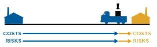 The seller bears all risks involved in bringing the goods to the named place of destination or to the agreed point within that place. In this Incoterms® rule, therefore, delivery and arrival at destination are the same.