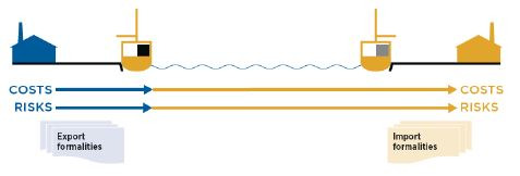 5. 수출/수입통관 – FAS에서는 해당되는 경우에 매도인이 물품의 수출통관을 하여야 한다. 그러나 매도인은 물품의 수입을 위한 또는 제3국 통과를 위한 통관을 하거나 수입관세를 납부하거나 수입통관절차를 수행할 의무가 없다.