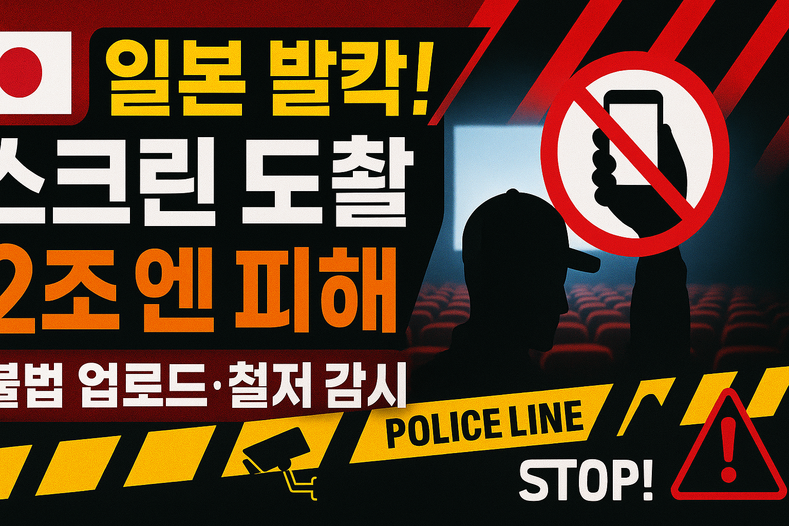 #한국유학생도촬 #2조엔피해 #일본콘텐츠불법업로드 #스크린도촬 #캠코딩 #ABJ #CODA #저작권법 #영화도촬방지법 #일본불법복제단속 #콘텐츠보호 #극장보안 #AI콘텐츠단속