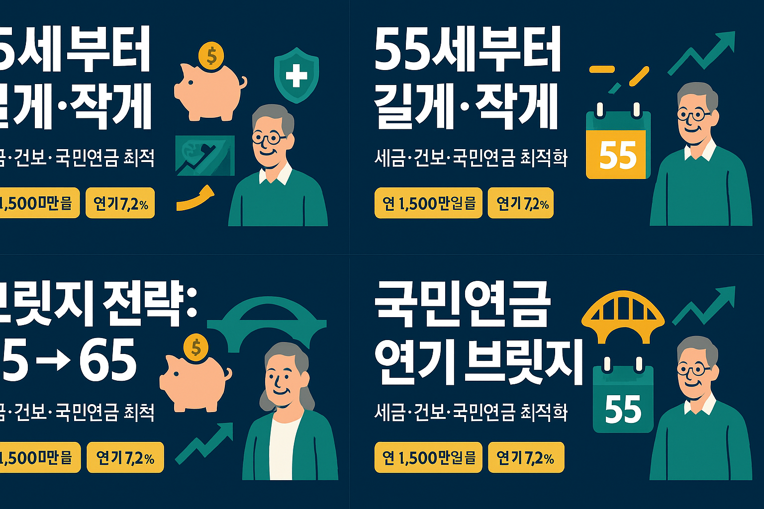 4. **국민연금 연기(연 7.2% 가산)**와 55세 브릿지 전략