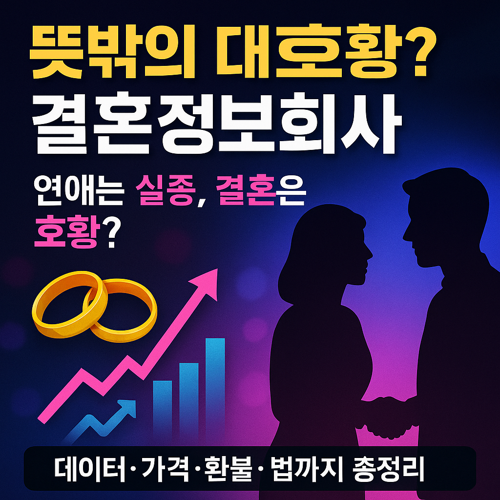 - “뜻밖의 대호황? 결혼정보회사 급성장 이유 7가지|연애 실종·가격·환불·법까지 총정리”