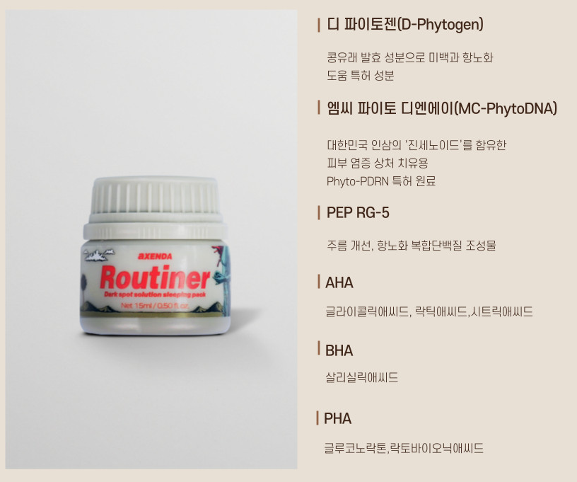 - 제품명: 악센다 루티너 15ml 수면필링 미백 잡티 나이트케어 필크림 멀티밤