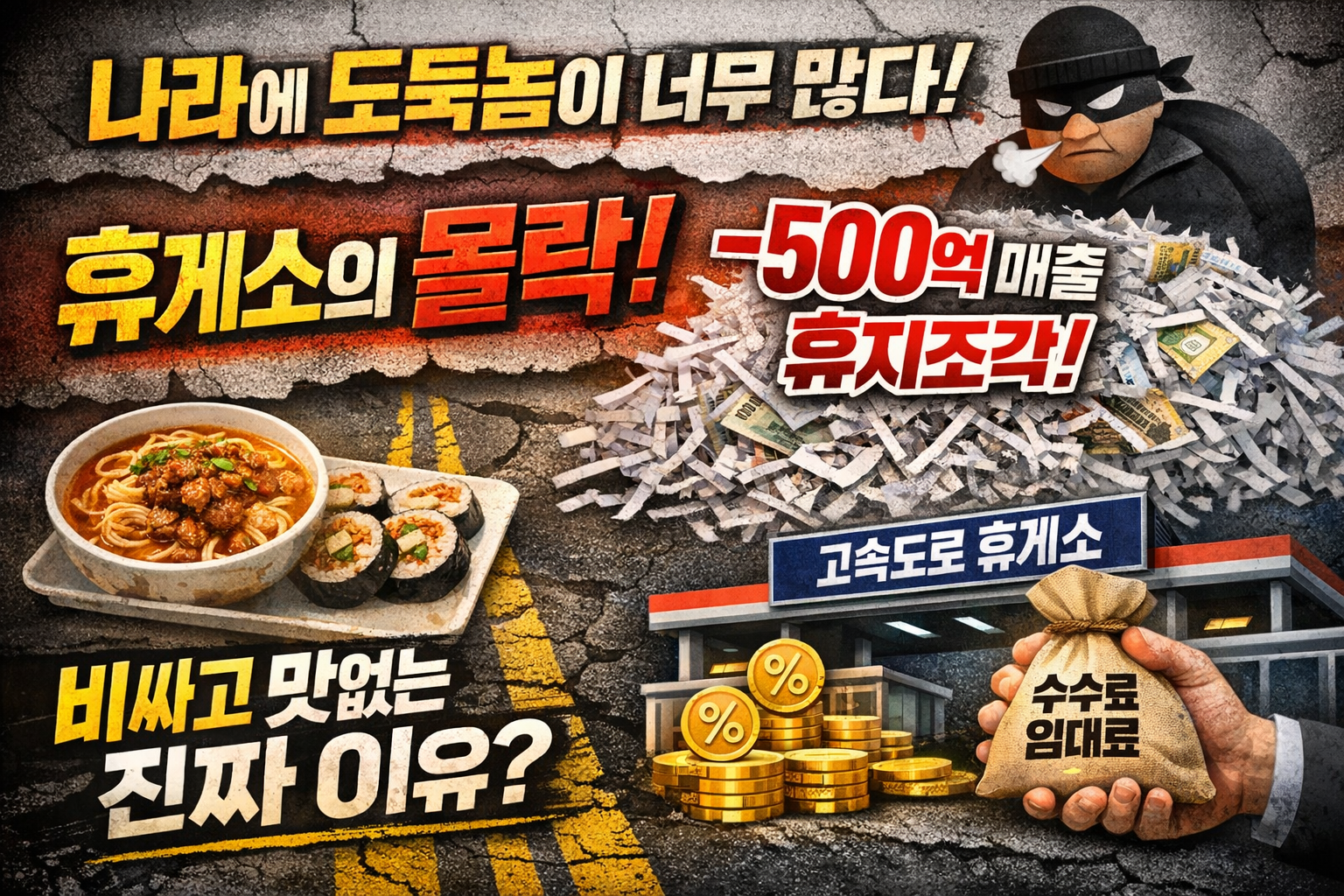 키워드: 고속도로 휴게소, 휴게소 음식 가격, 휴게소 수수료 구조, 한국도로공사 임대료, 위탁운영, 최저임대료, 프랜차이즈, 맛 품질, 휴게소 몰락