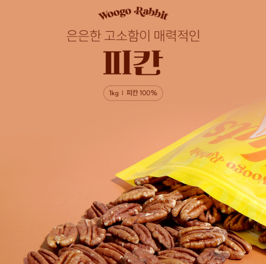 - 제품명: 우고래빗 생 피칸 1kg (500g+500g) 갓구운 피칸 반태