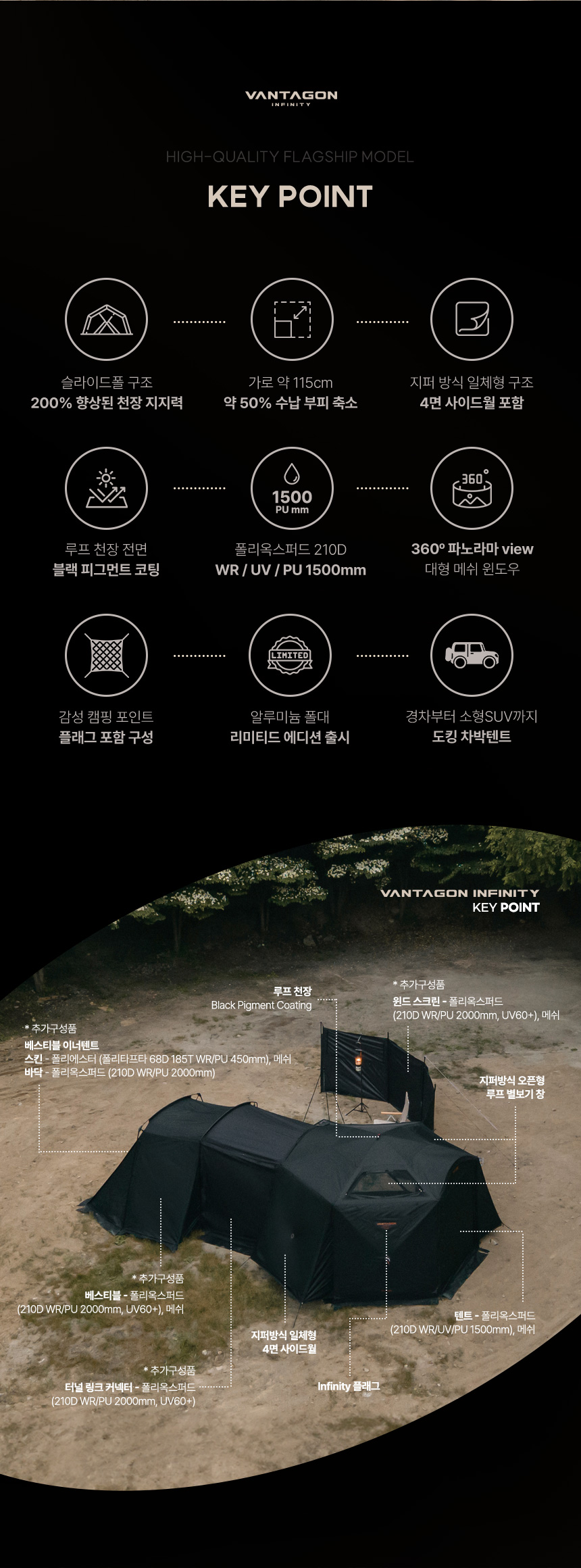 **감성, 실용성, 확장성, 설치 간편함까지 모두 갖춘 ‘완성형 쉘터형 텐트’**라고 할 수 있습니다.