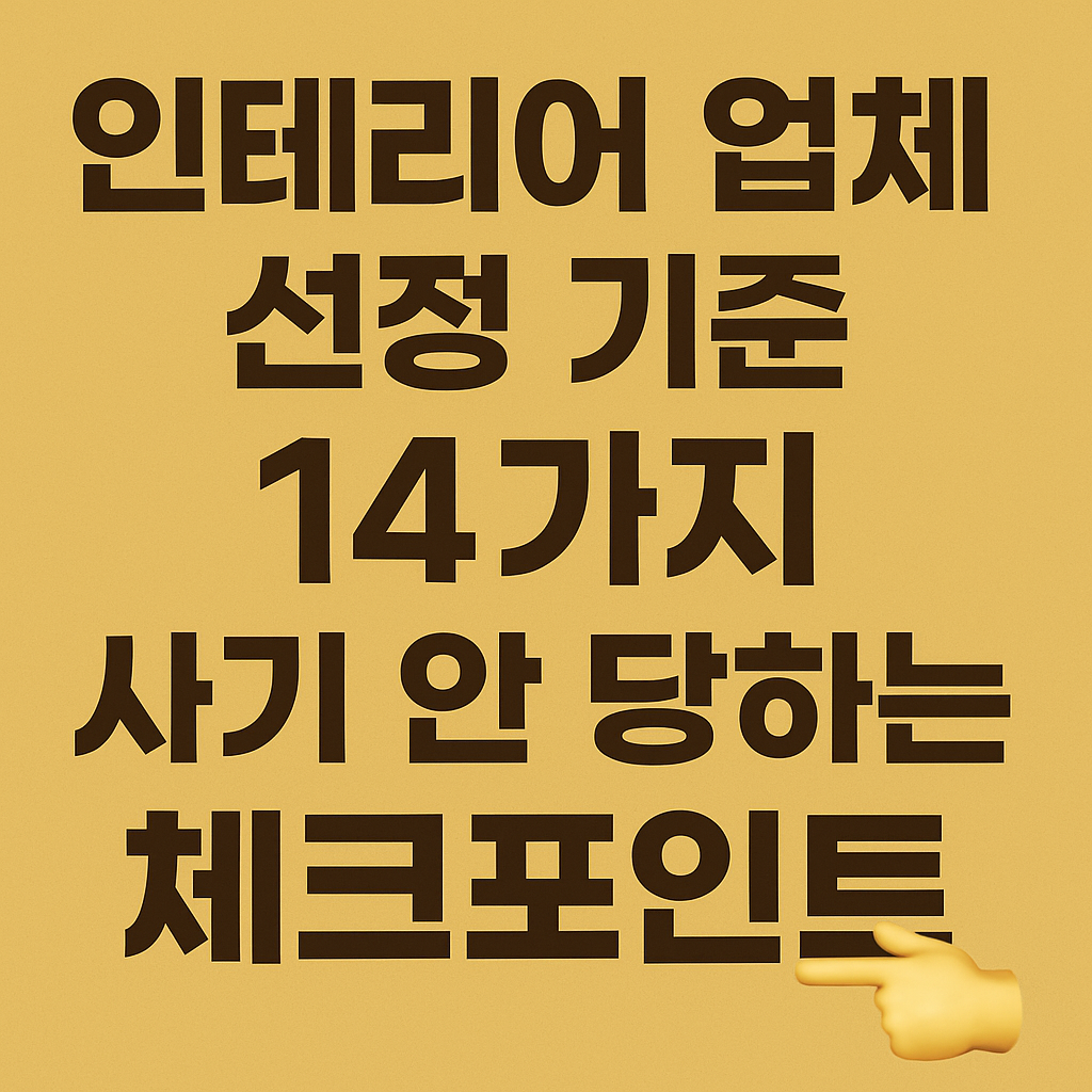 🏠 《인테리어 업체 선정 기준 14가지》사기 안 당하는 체크포인트 — 좋은 업체 vs 위험한 업체 확실히 구별하는 법
